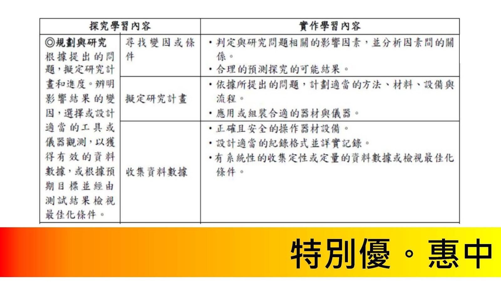 因此新課綱特別詳述了<探究學習內容>有下列四大項